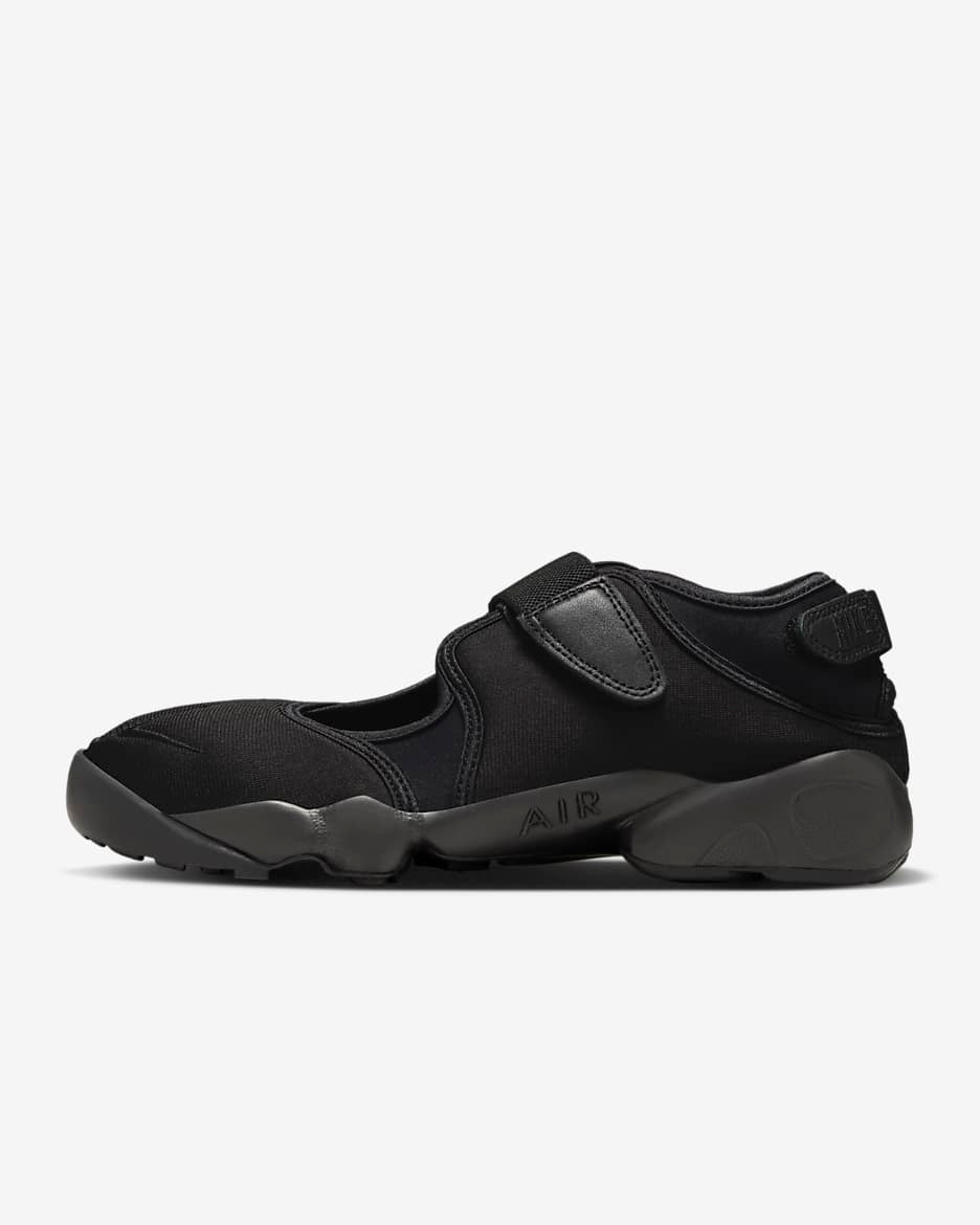 Shop Nike Air Rift unisex sneakers in Black/Red, White/Blue & Grey/Yellow—split-toe design with velcro straps and phylon midsole. Sizes 3-9. Iconic ’90s style revived.